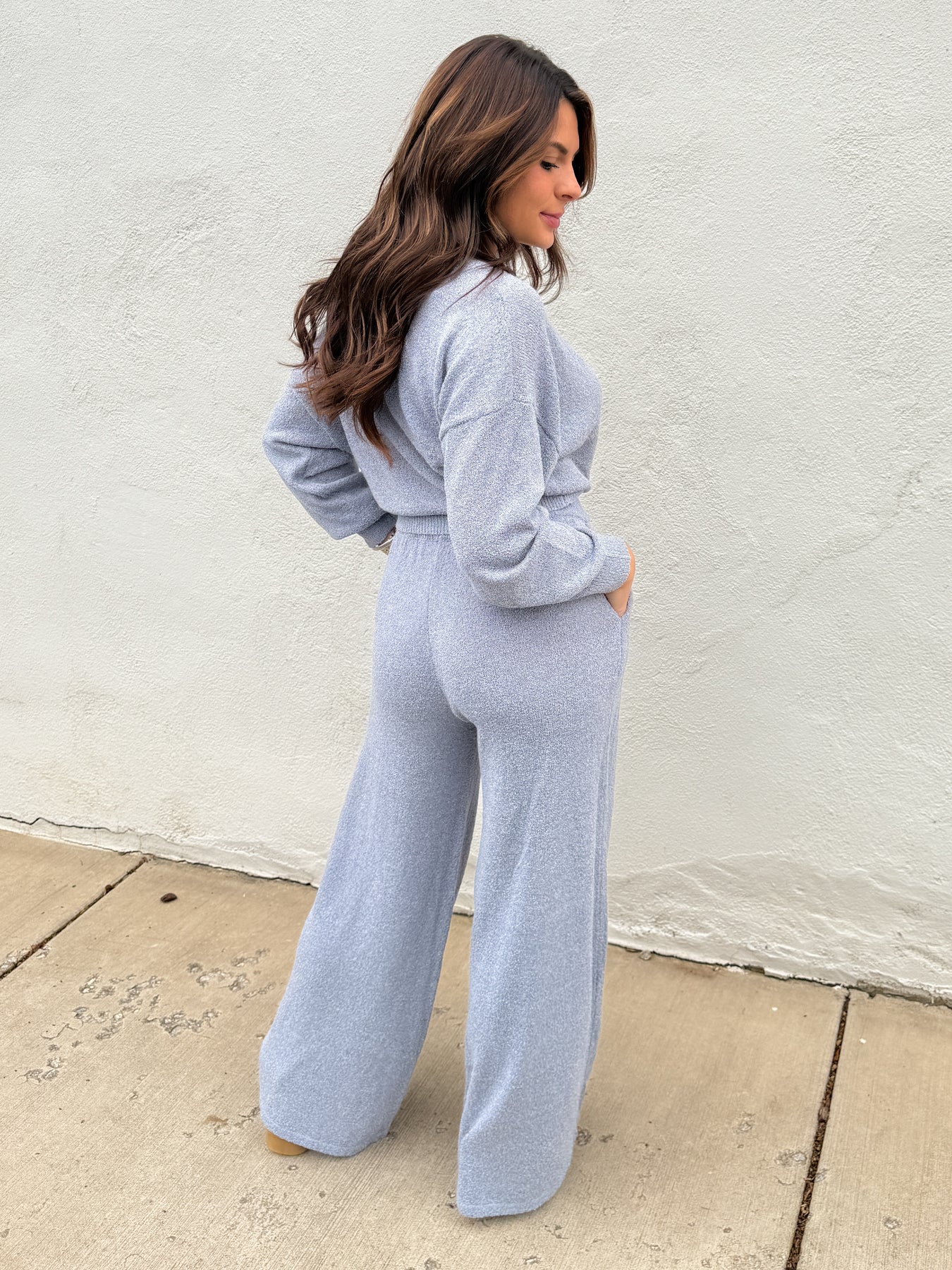 Matching sets are still so popular. This boucle knit pant has a drawstring waist with a pleated front and pockets. Loungewear but elevated. Pairs perfectly with matching top (sold separately.)